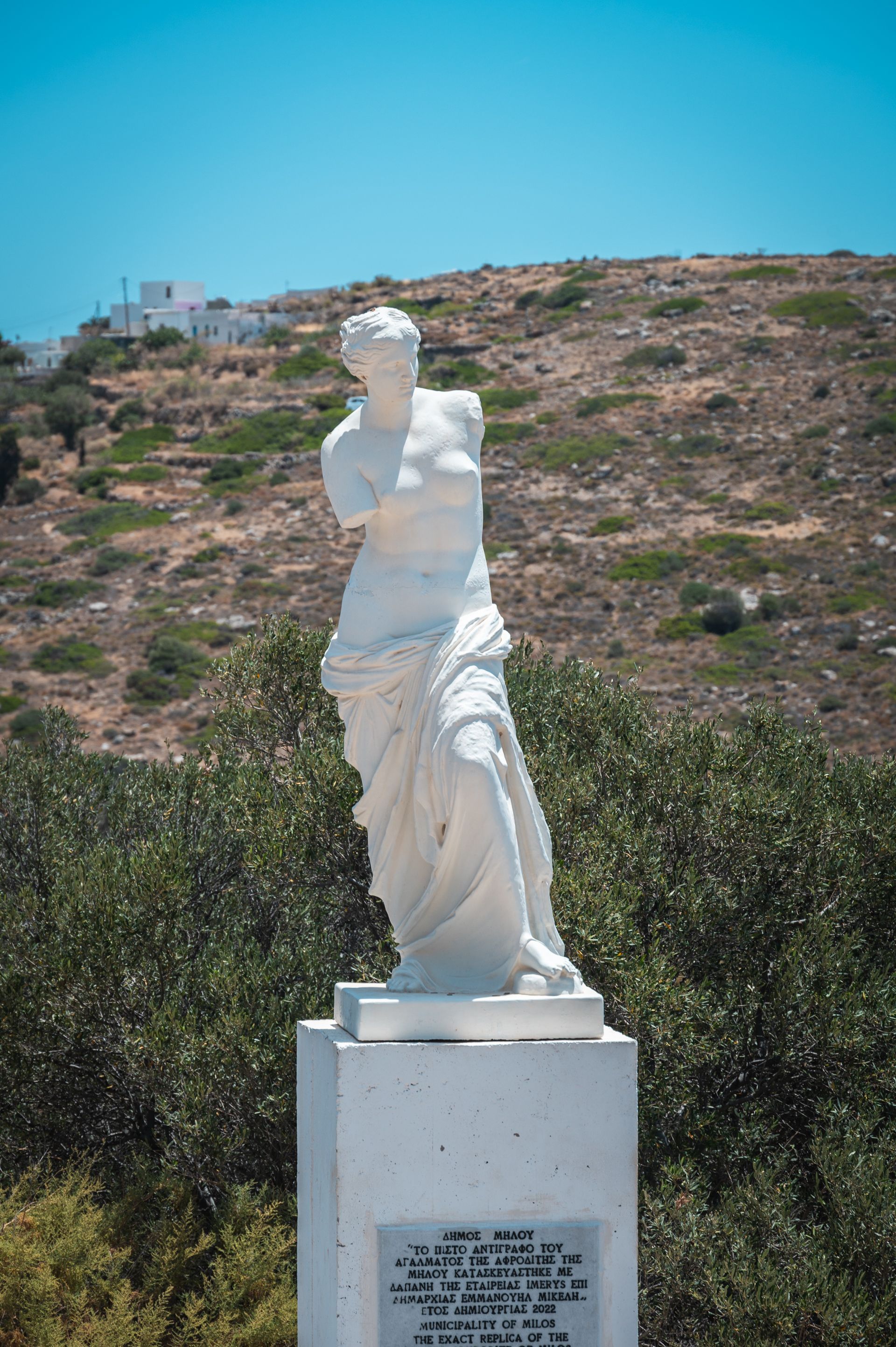Near Plaka, there’s the town of Trypiti. You can walk from one to the other, although that would be a bit of a longer walk. It is also nice and has a reproduction of the statue of Aphrodite of Milos (which is known as Venus of Milos, but Venus is not Greek mythology…) in the middle of some hillside. Which is weird and iconic at the same time.