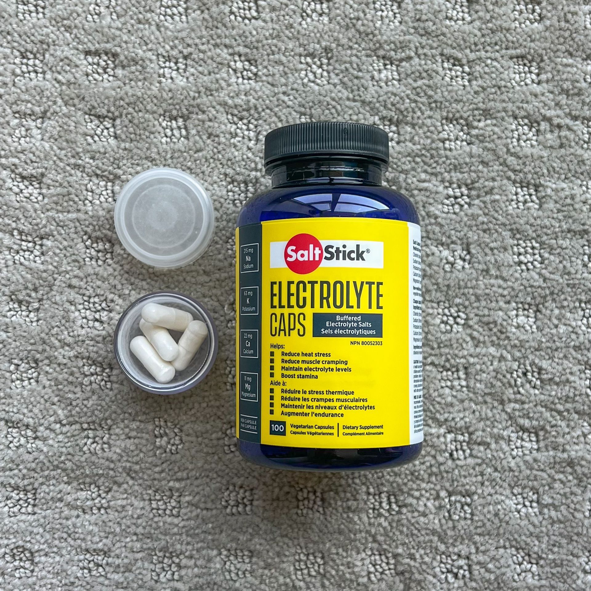 The pill that gets me going!! Electrolyte capsules, great on hot days and for intense hiking. Help to mitigate low energy, bad mood and pain that is resulting from insufficient salts in the body.