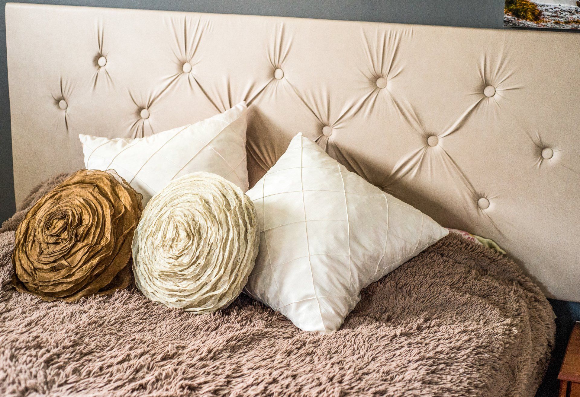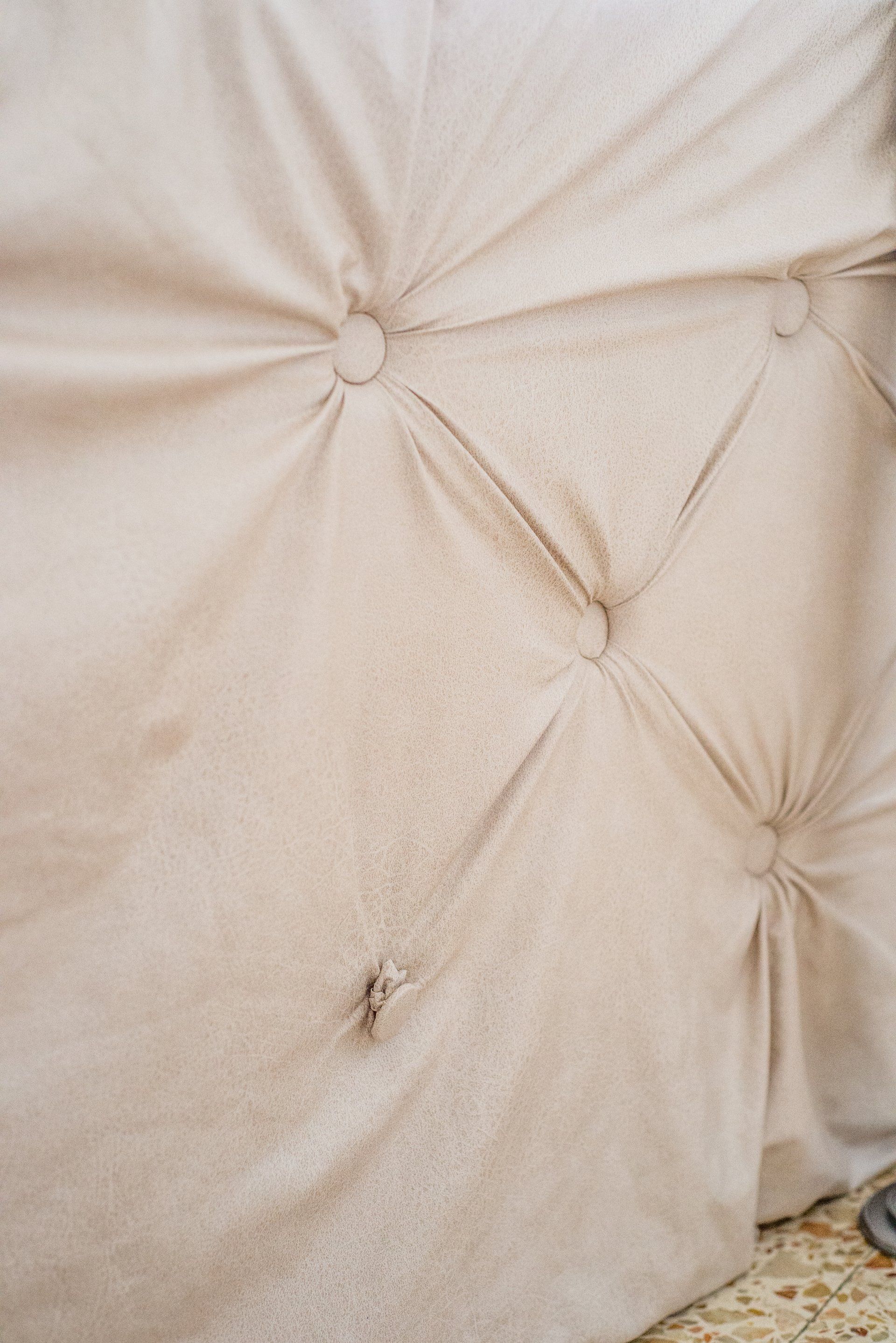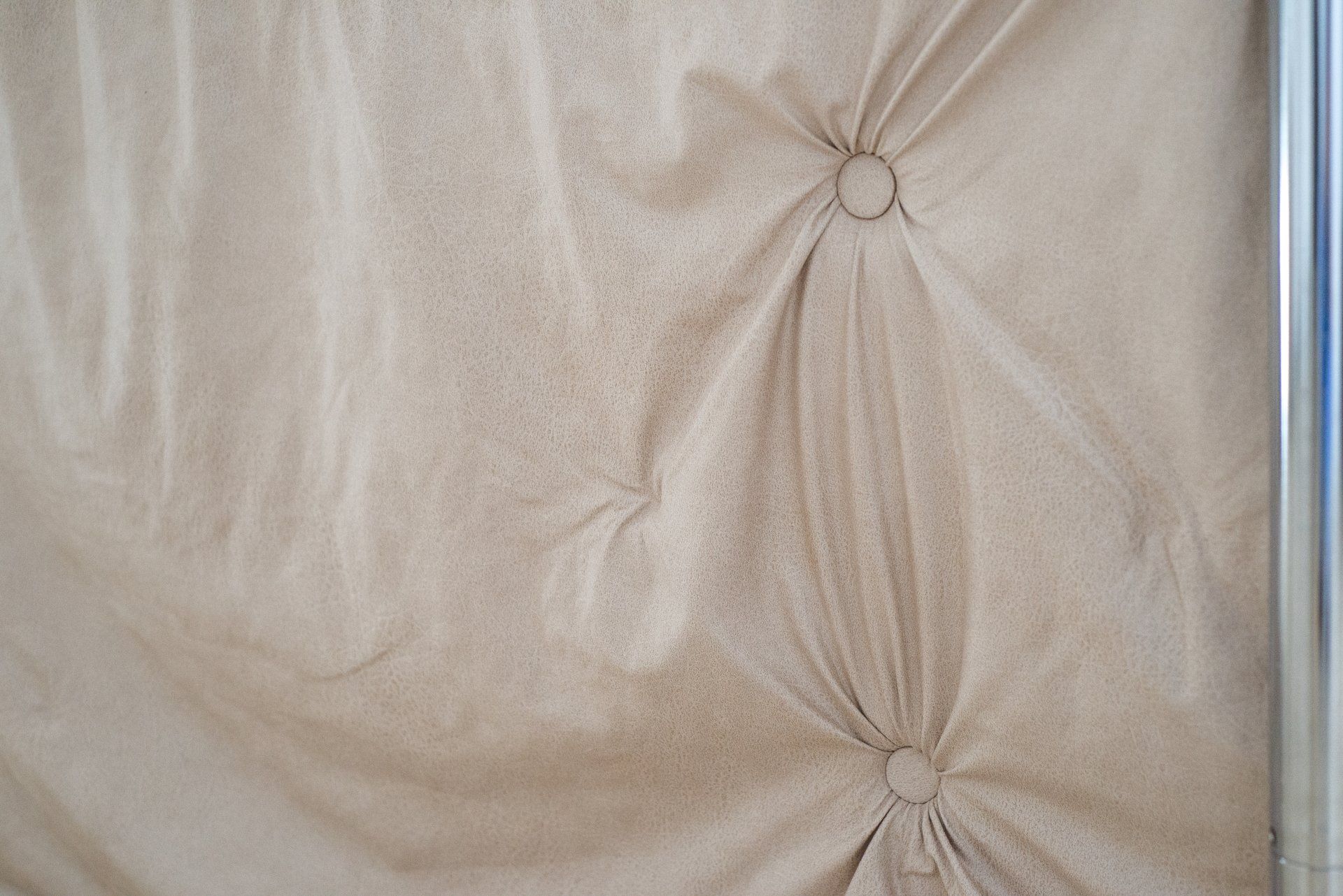 My first time making a tufted headboard. For simplicity, I hung it on a wall instead to actually attaching it to the bed frame.