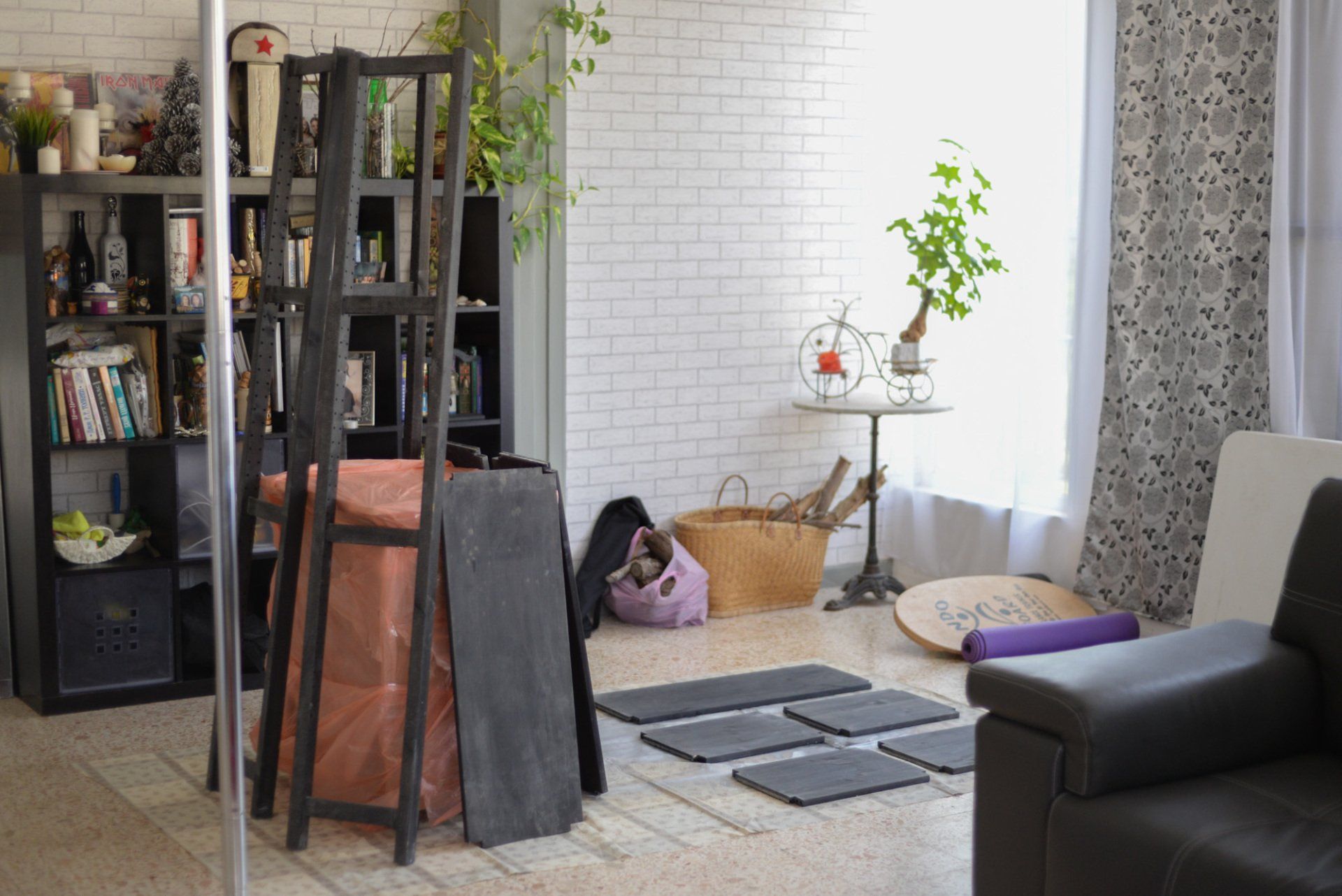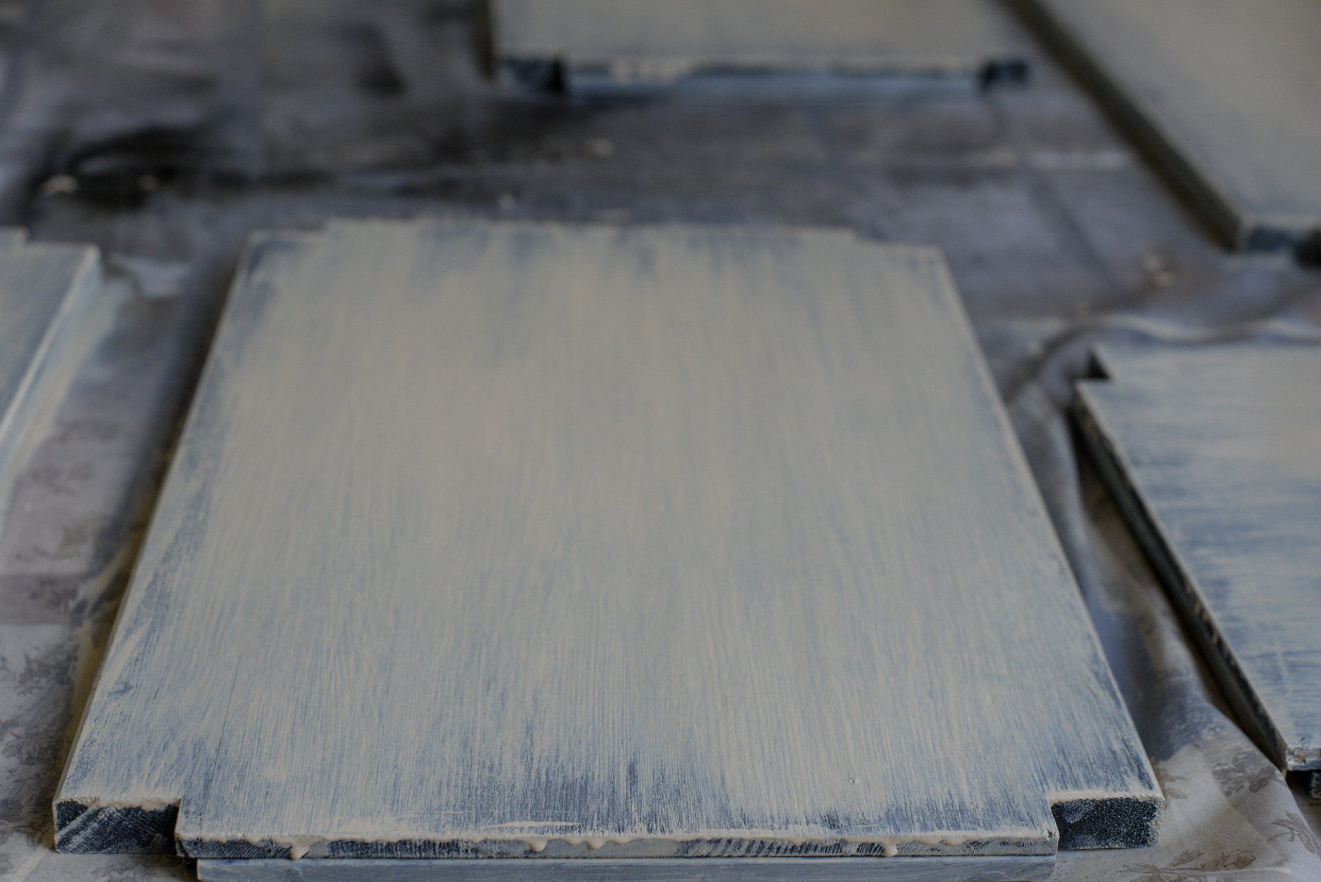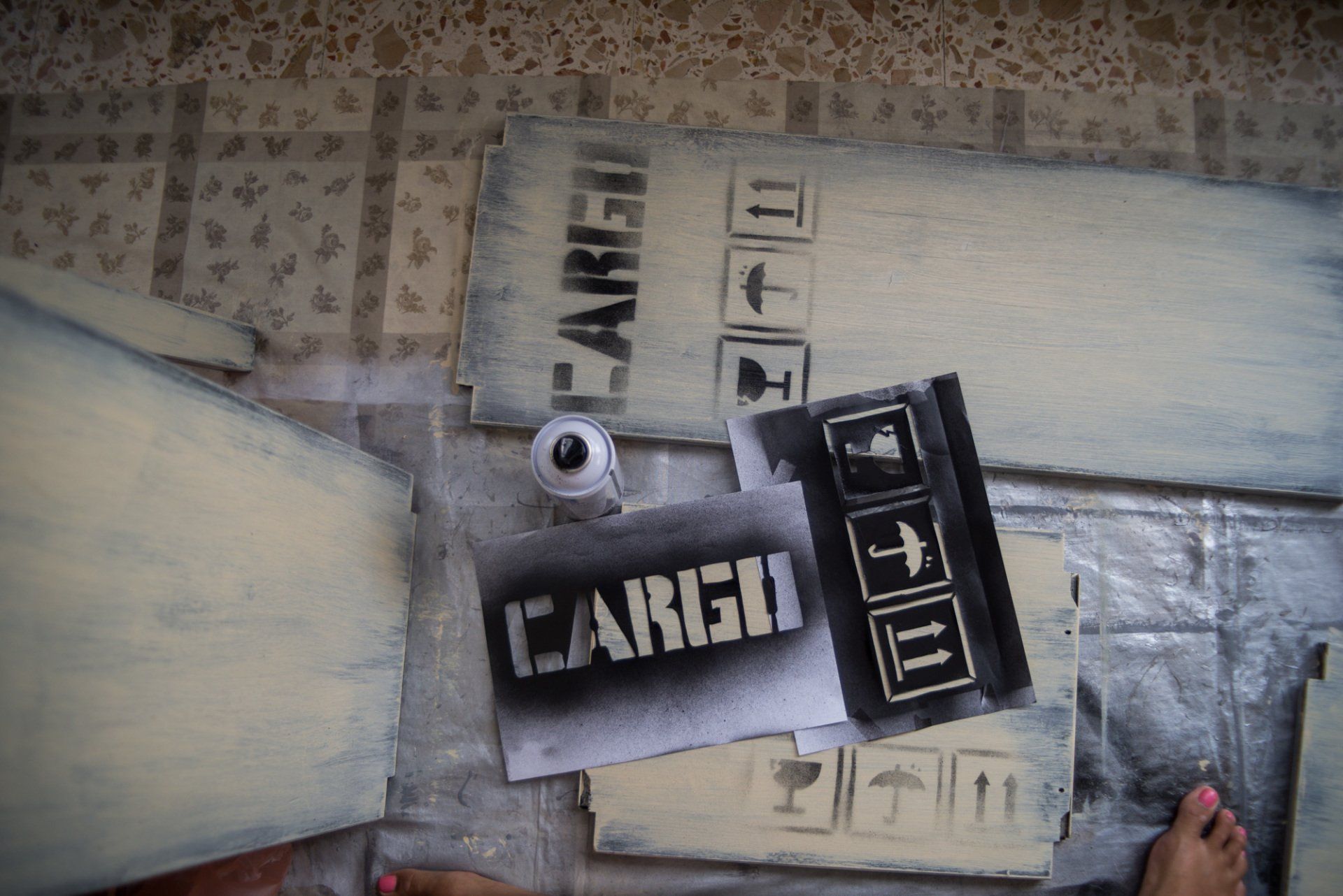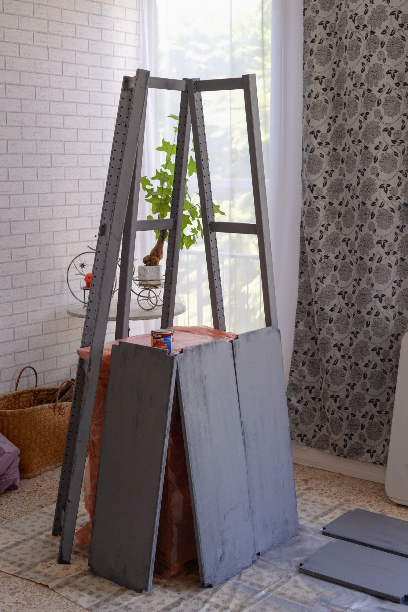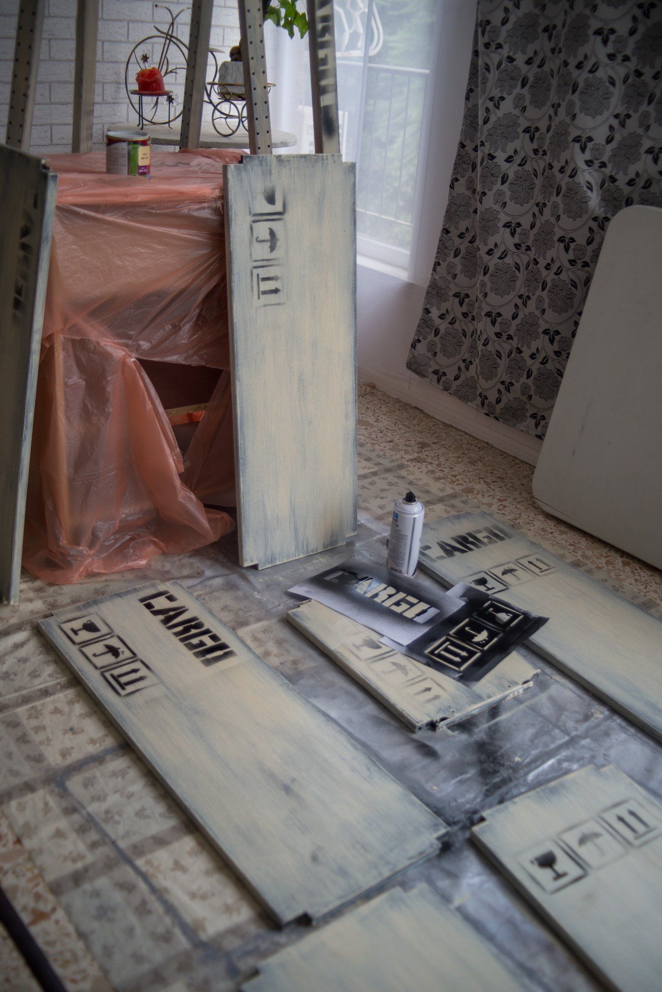 Got this shelf for free from a relative. It was painted plain black and I decided to continue the 2-layer painting experiments after the first success with the coffee table. Turned out really nice!