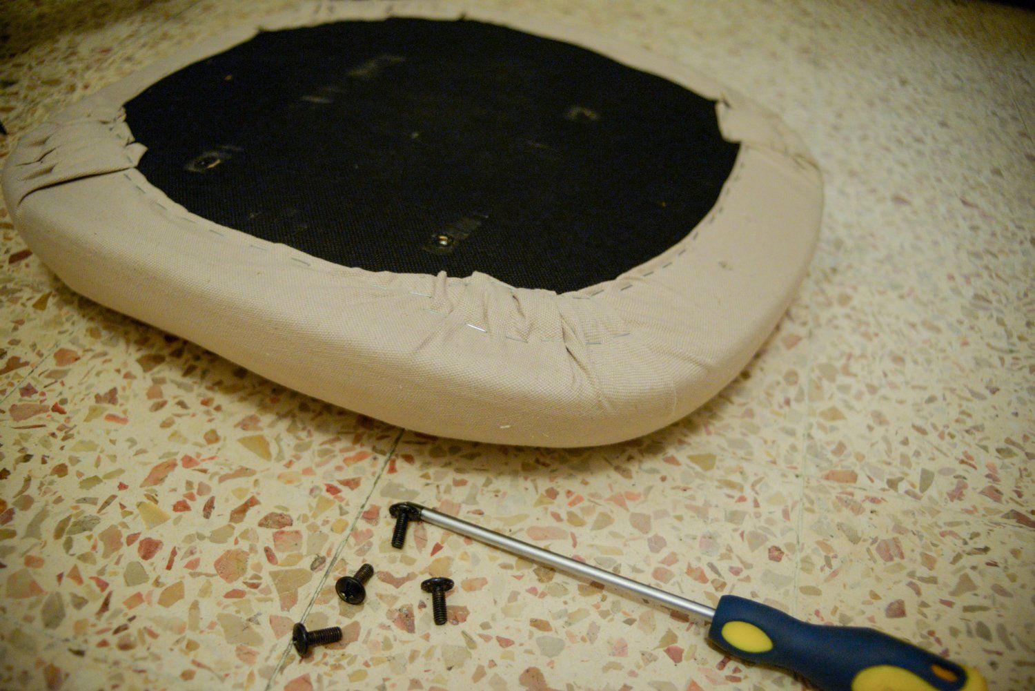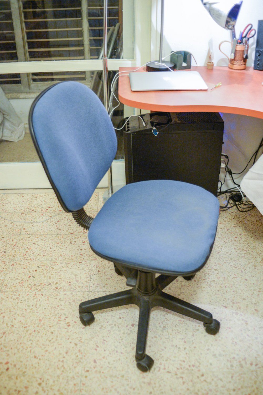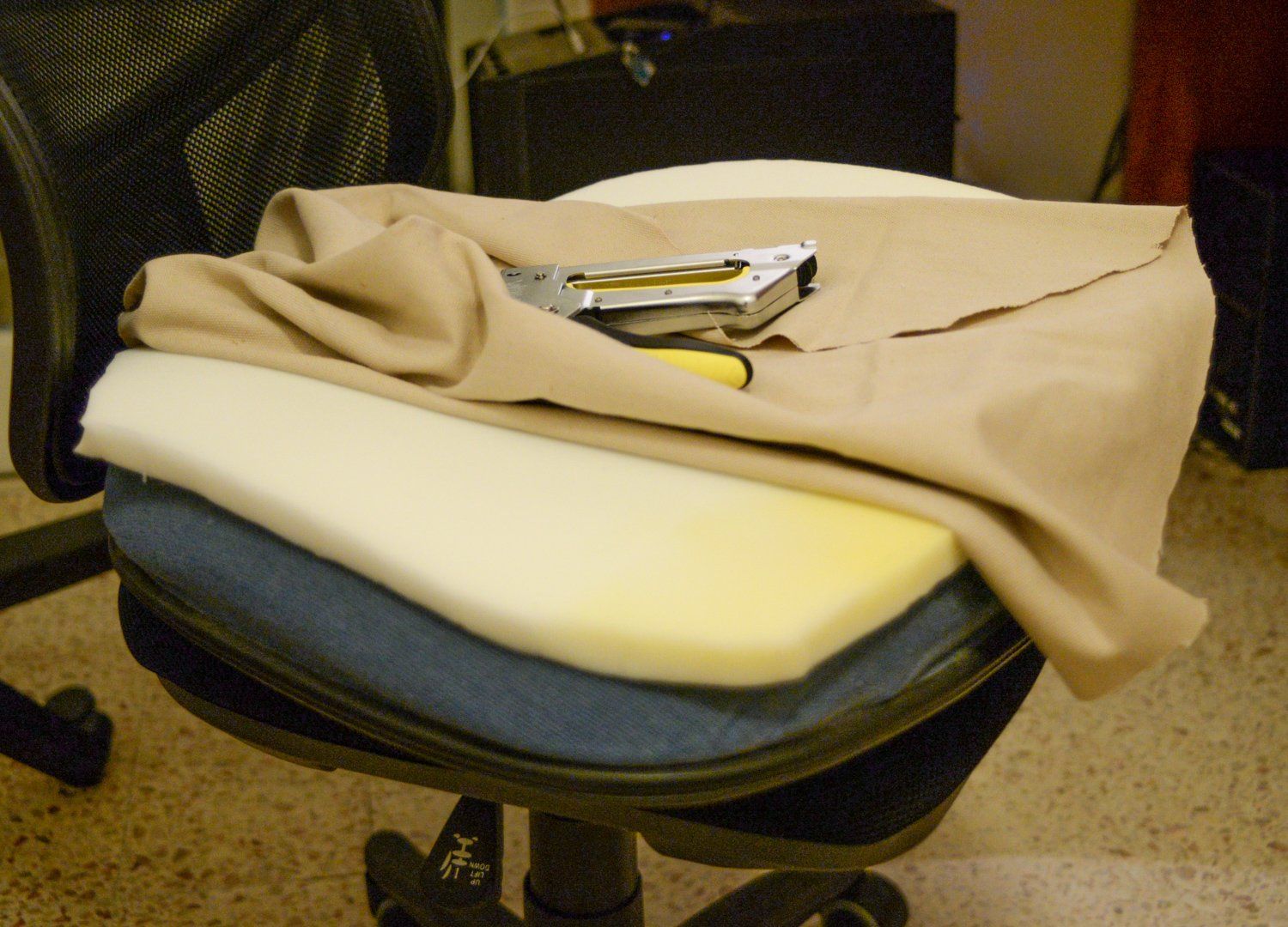 I had this cheap task chair for years and I think it was my first upholstering experience ever. It turned out a great success and I really loved it. A bummer though, that the canvas fabric wasn't suited for that heavy use and got covered with pilling :(