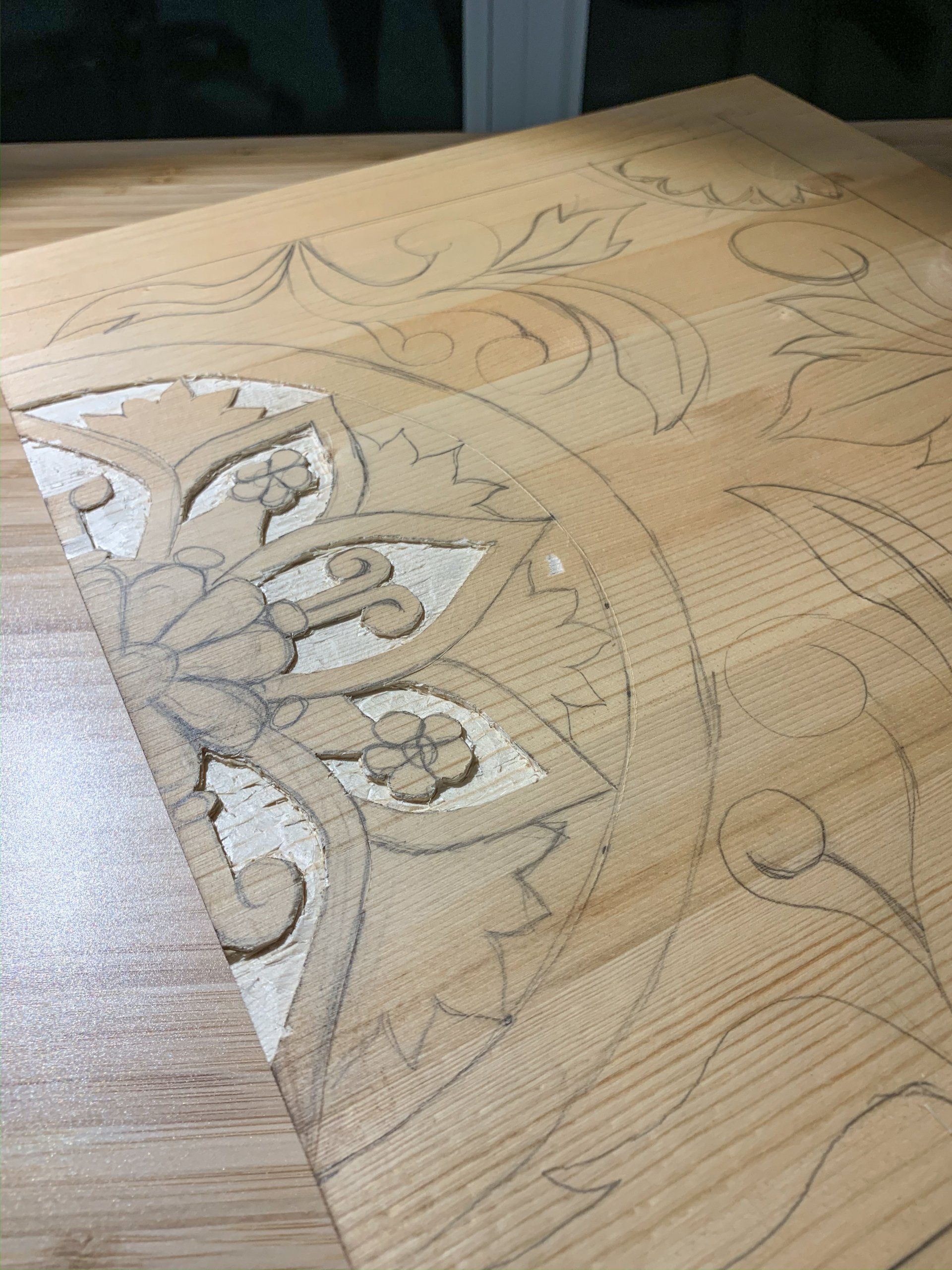 When we were about to move to a new place, I decided to try and forfill my dream of a furniture piece with carved wood design. So I started building a tv shelf from scratch - from pine panels I bought at Home Depot. Lucky for me, it's open during the pandemic...